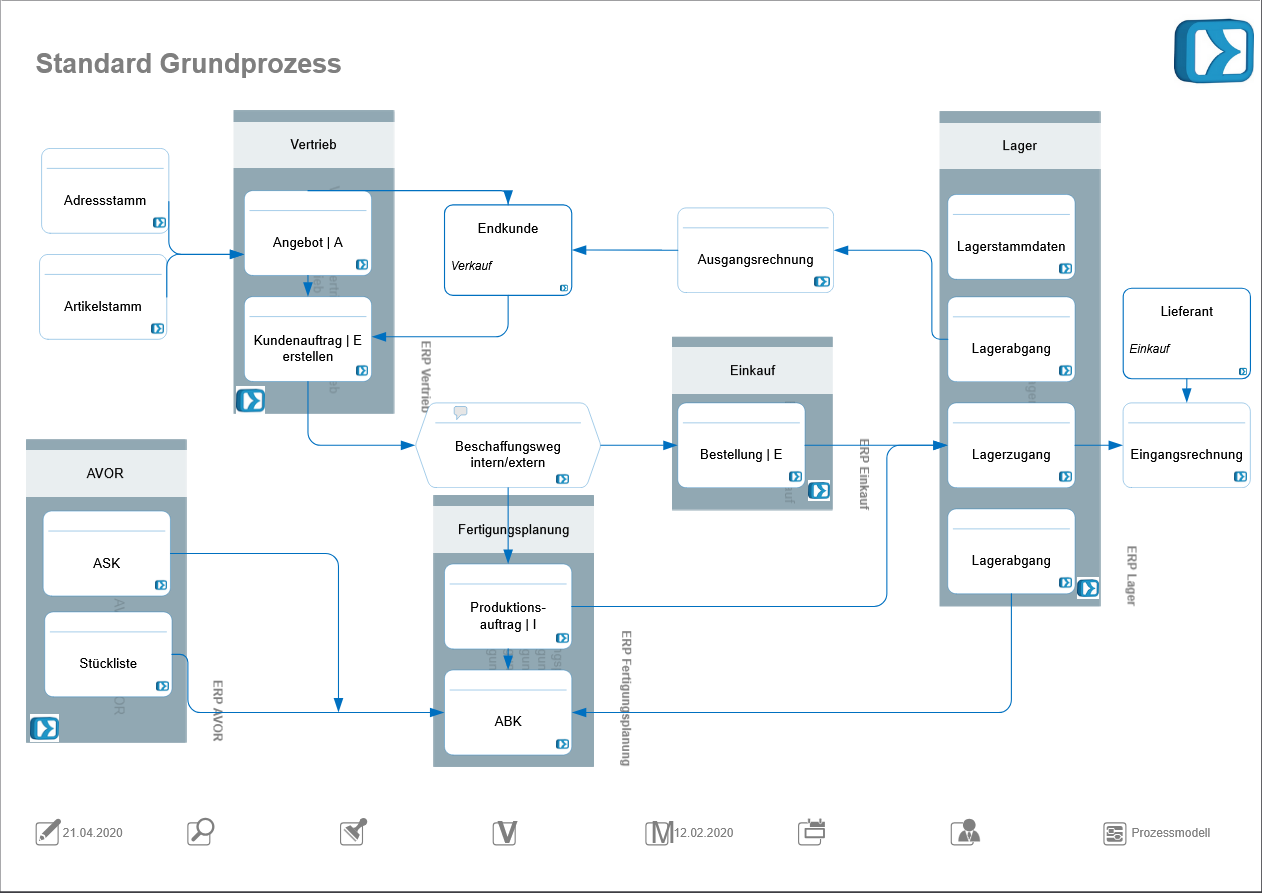 Der Ablauf im Grundprozess sieht vor, dass die in einer ABK hinterlegten Artikel (Kaufteile, Rohmaterial, Vorprodukte) auf die ABK aus dem Lager abgebucht werden.