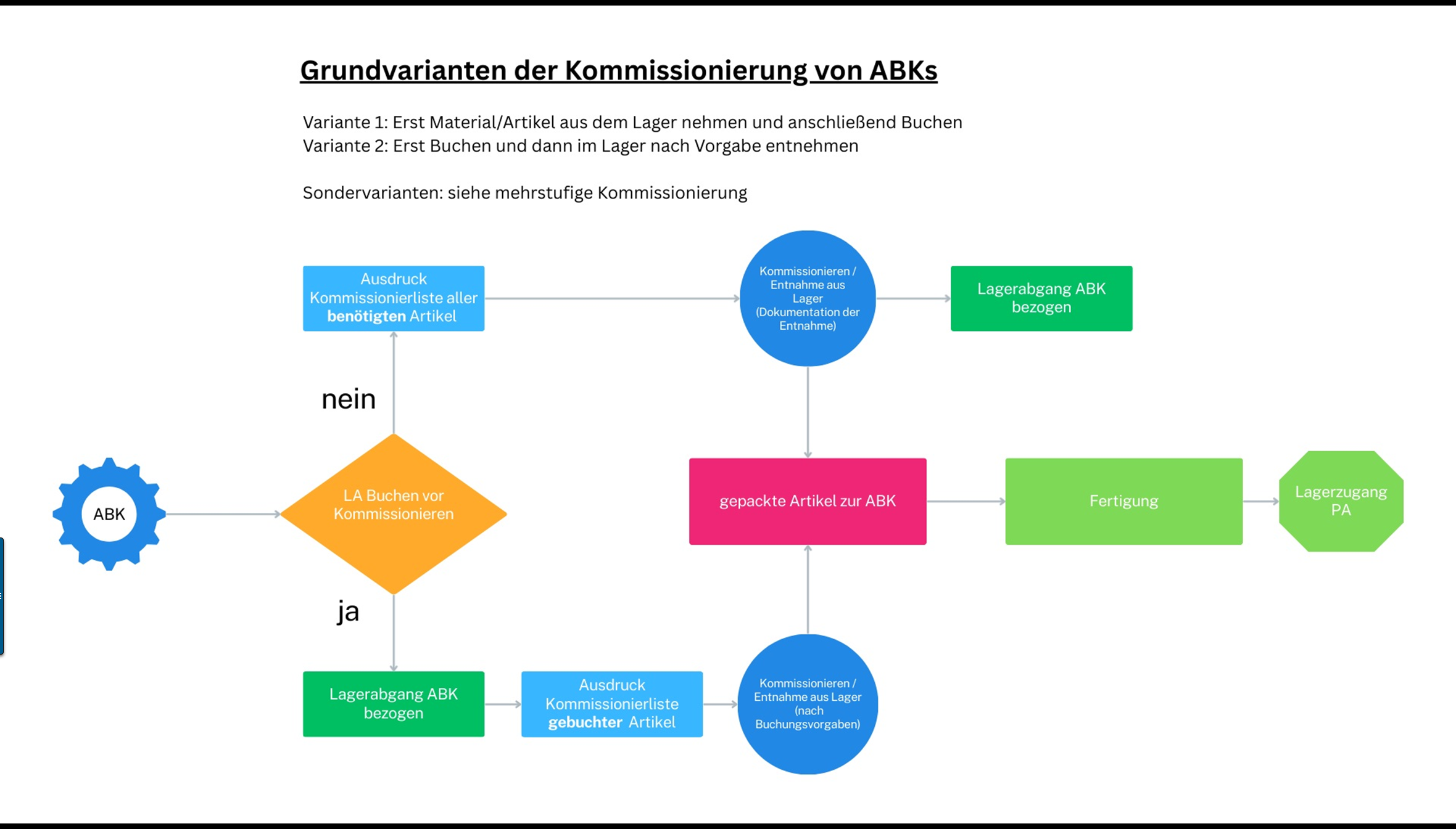 Hinweis: Darüber hinaus gibt es spezielle Varianten in der mehrstufigen Kommissionierung (z.B. Projektlager, Maschine, Reservierungen usw.).