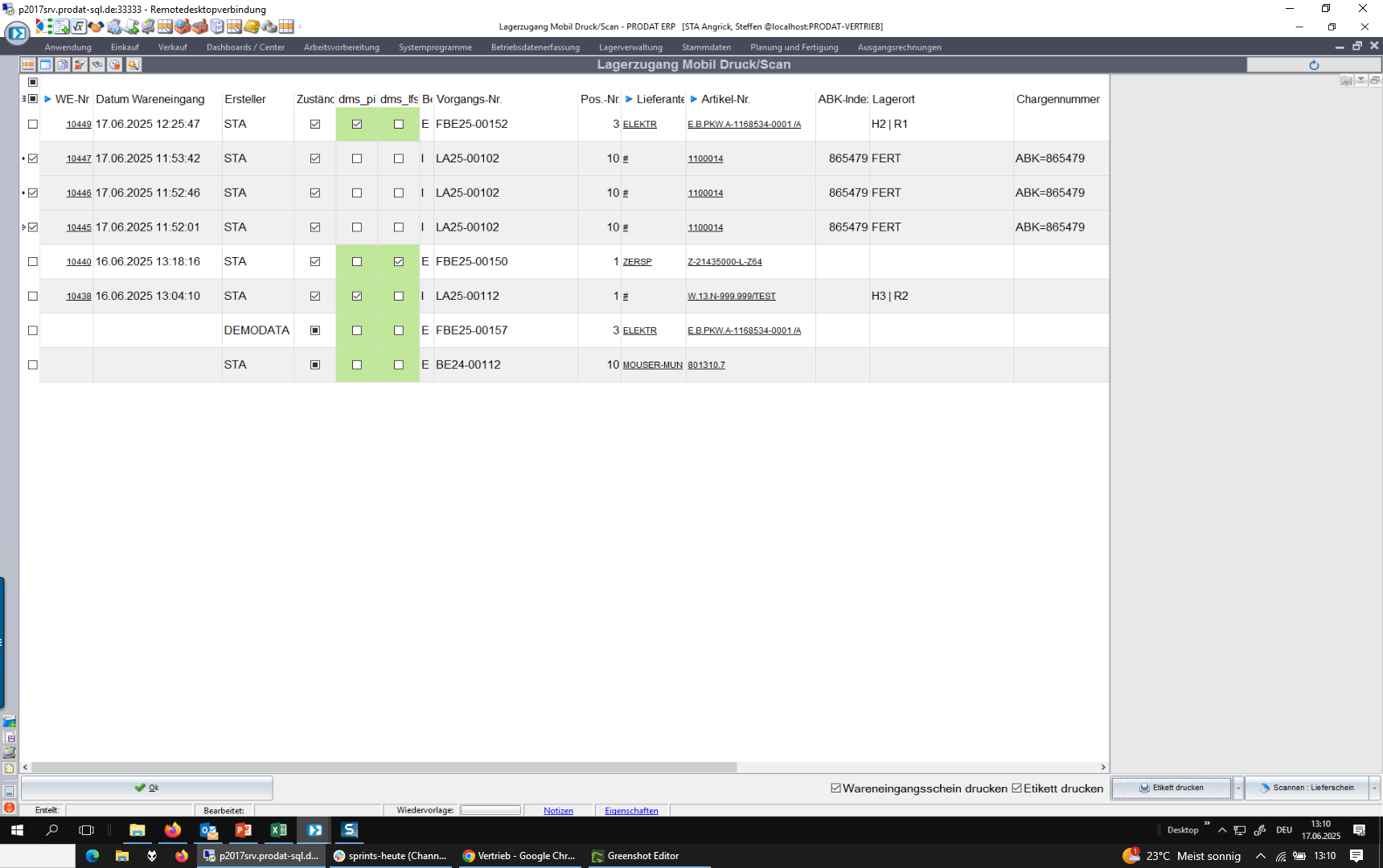 Es folgen die üblichen Druck und Scanabläufe zu den markierten Lagerzugängen nacheinander durch.