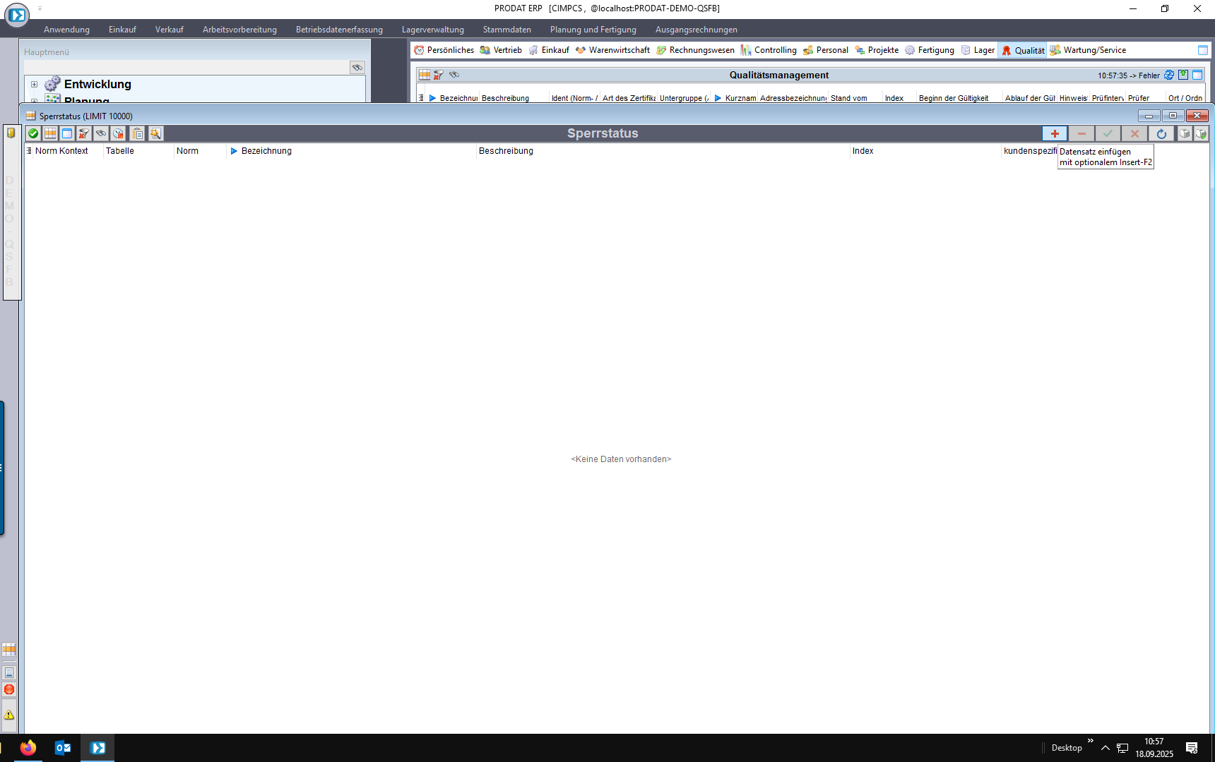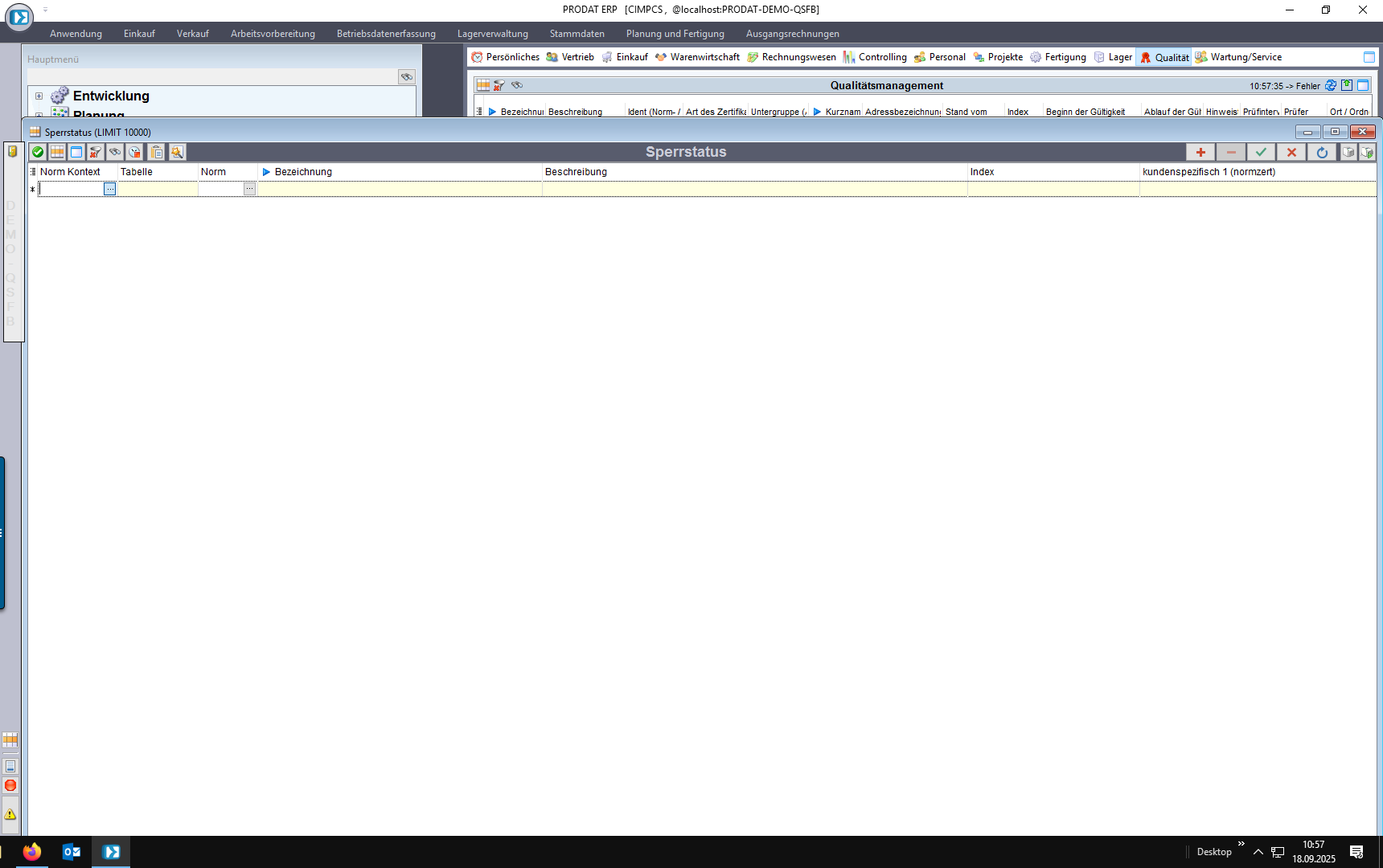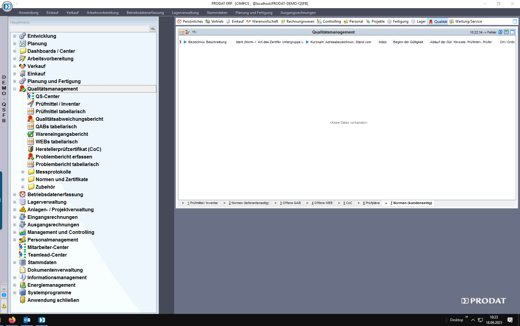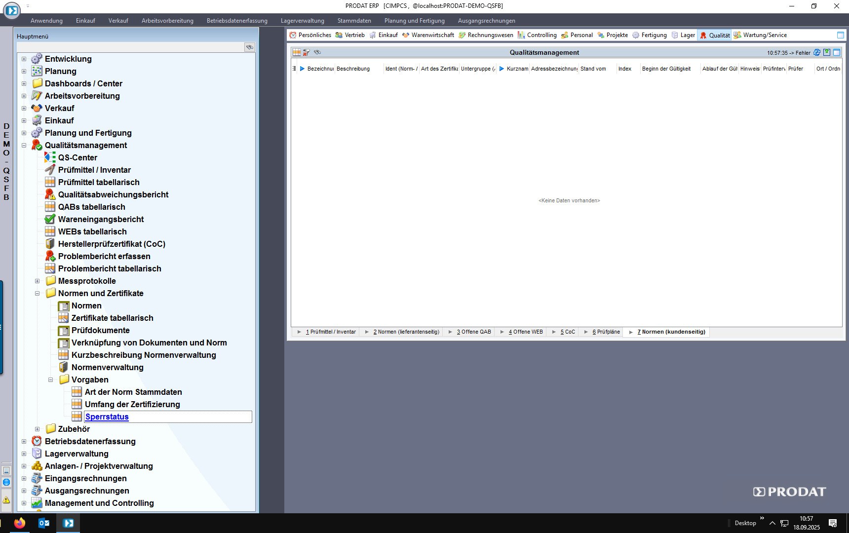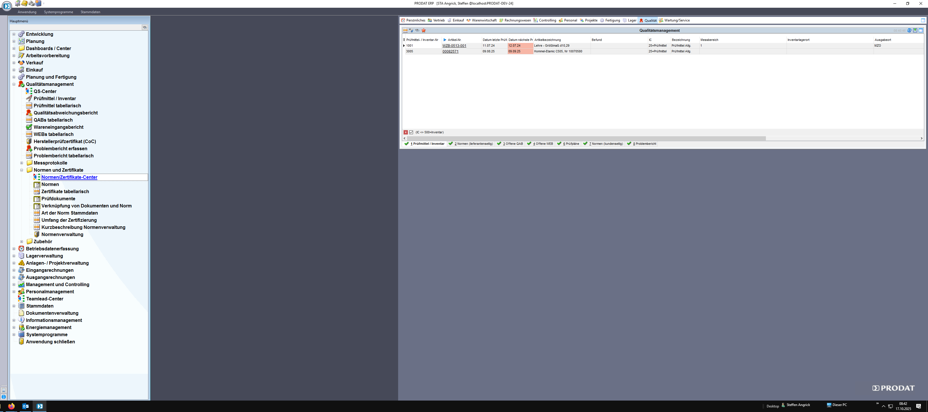 Die Module zur Normen und Zertifikatsverwaltung befinden sich im Hauptmenü unter QUALITÄTSMANAGEMENT.