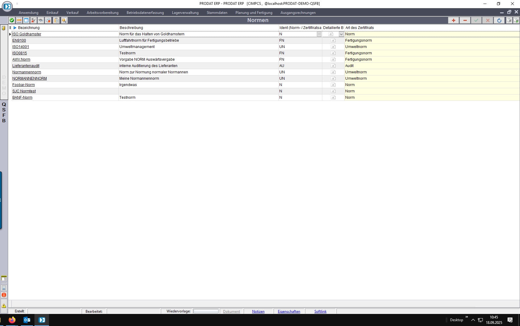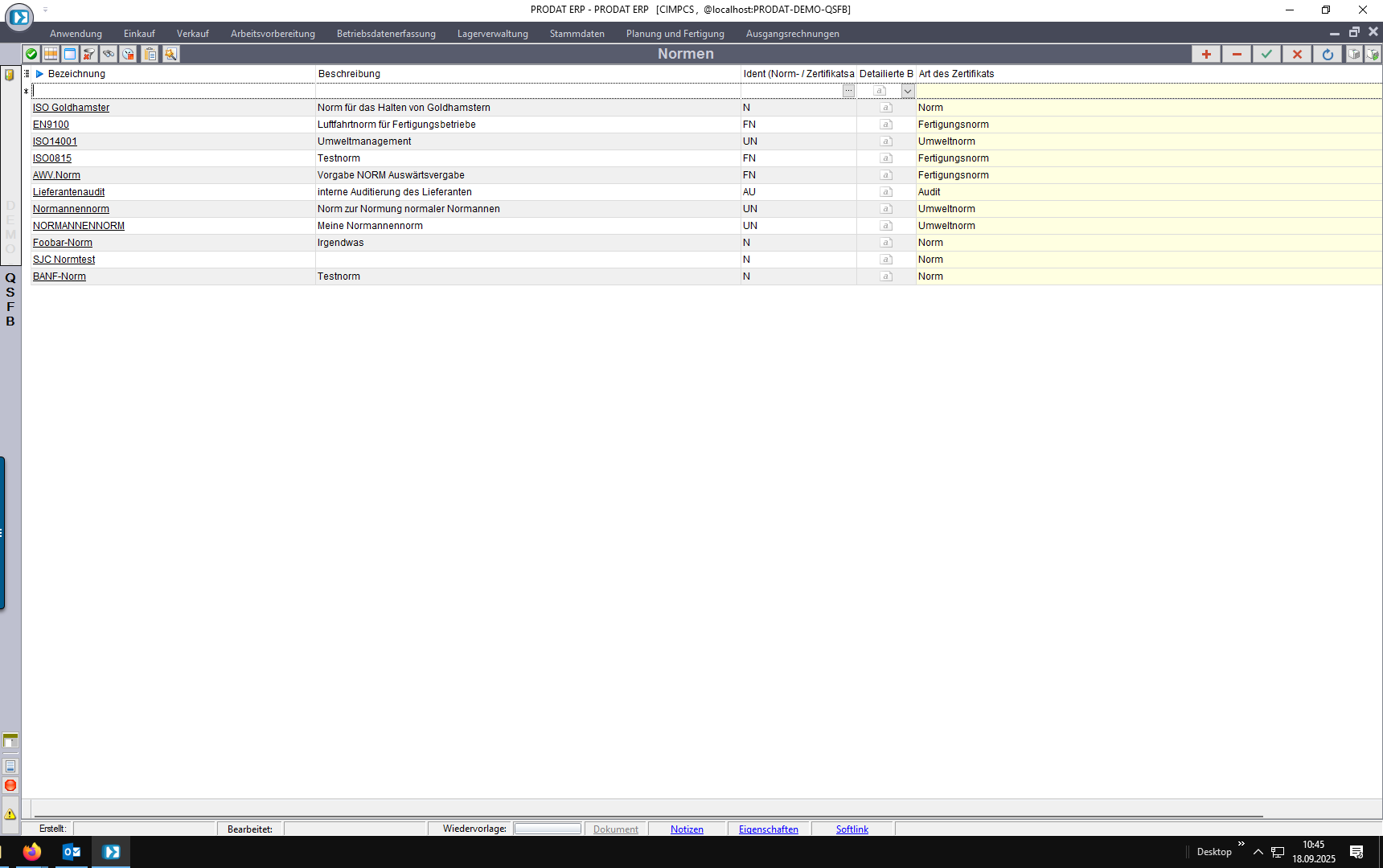 Zunächst müssen die Normen und Zertifikate angelegt und definiert werden, wie sie im Prozess zu behandeln/berücksichtigen sind.