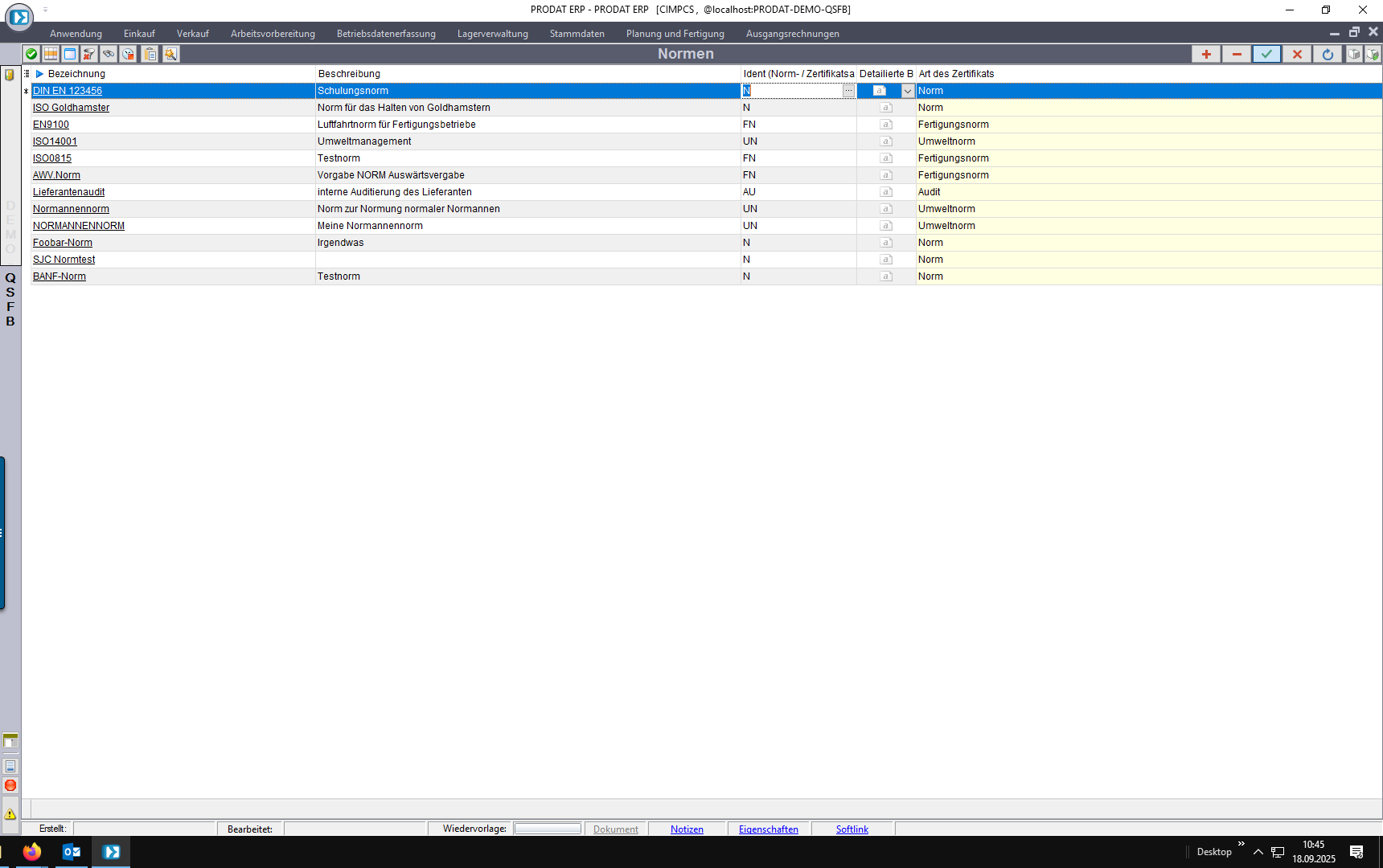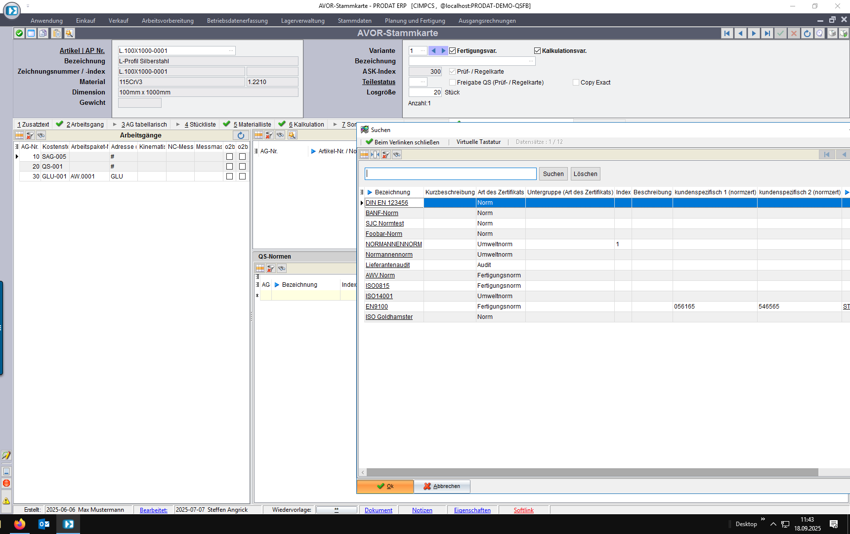 - Normen angelegt,
