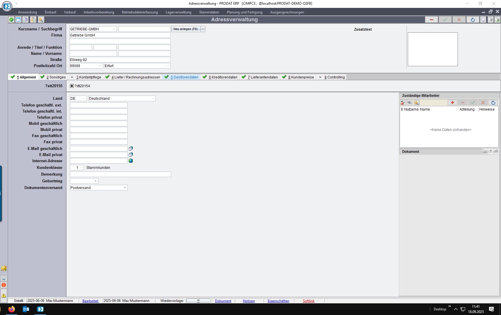 Bei Kundenforderungen in den Debitorendaten