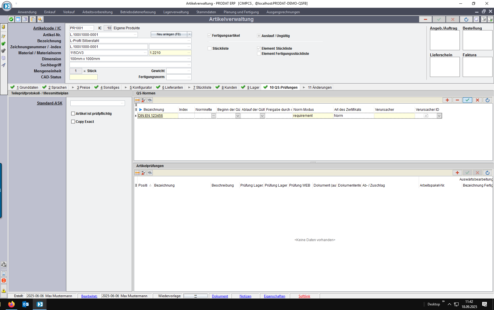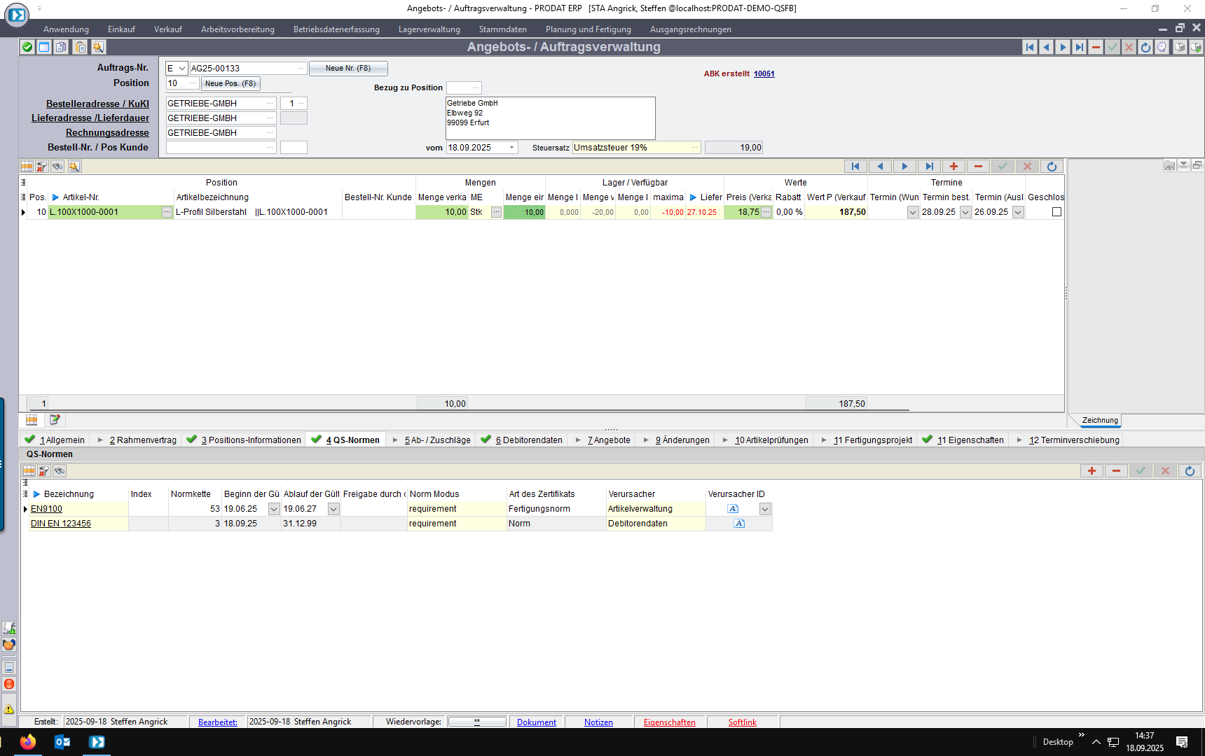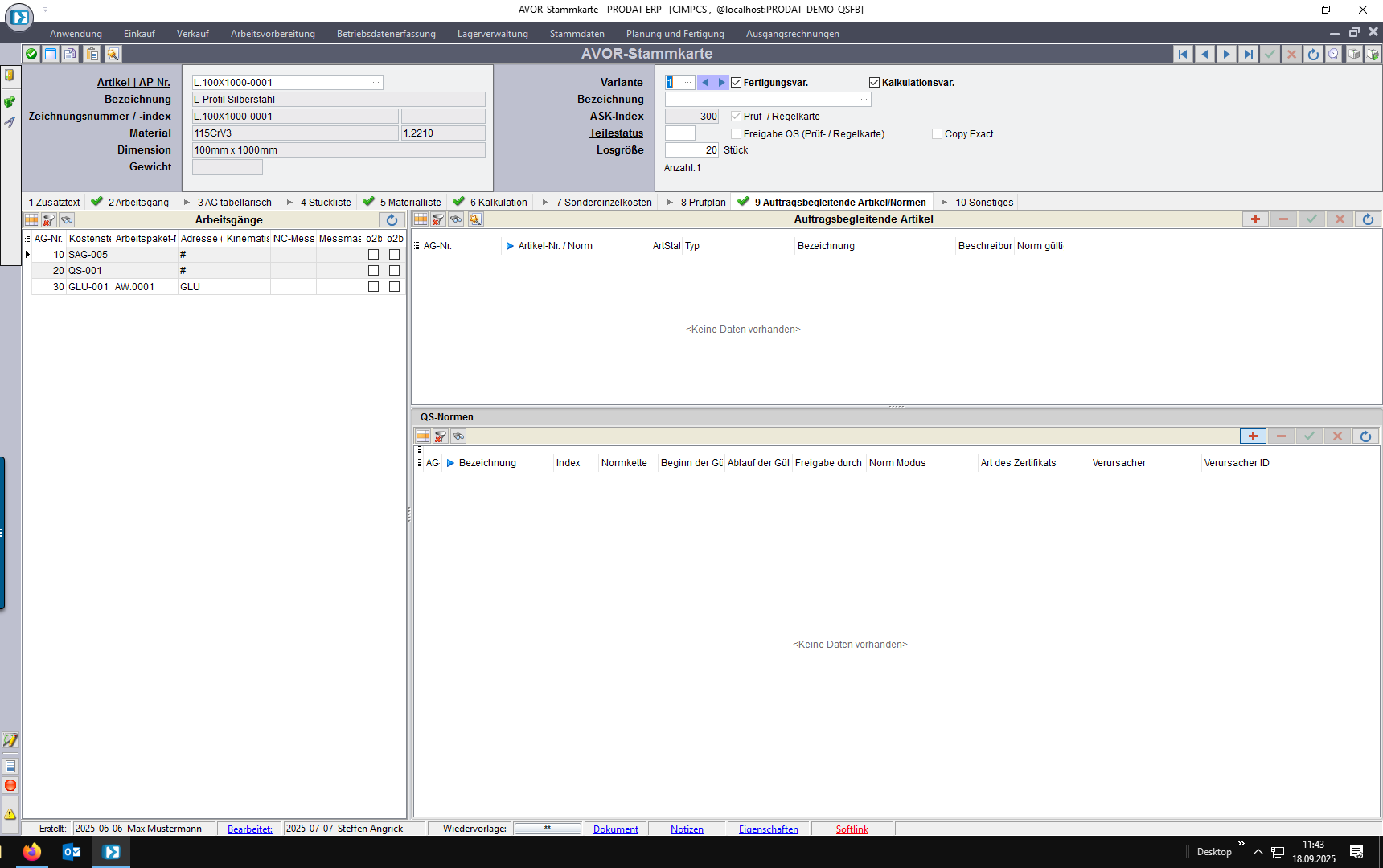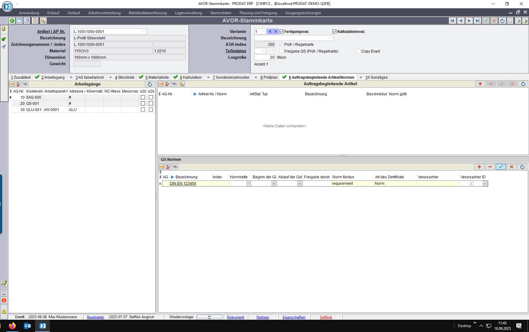 4. Kundenauftrag: individuelle Normforderung unabhängig vom Artikel/Kunden