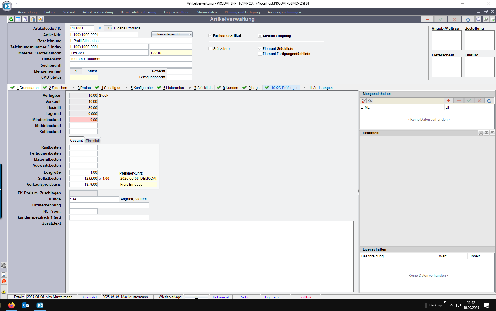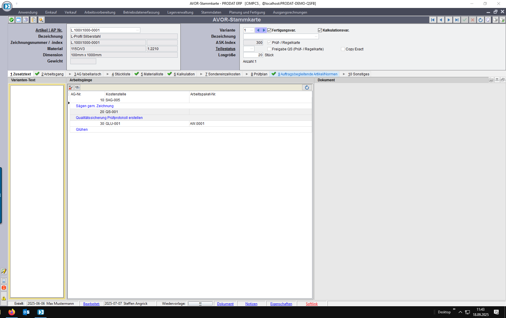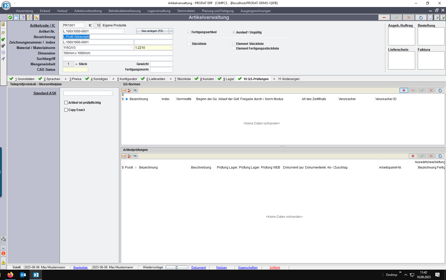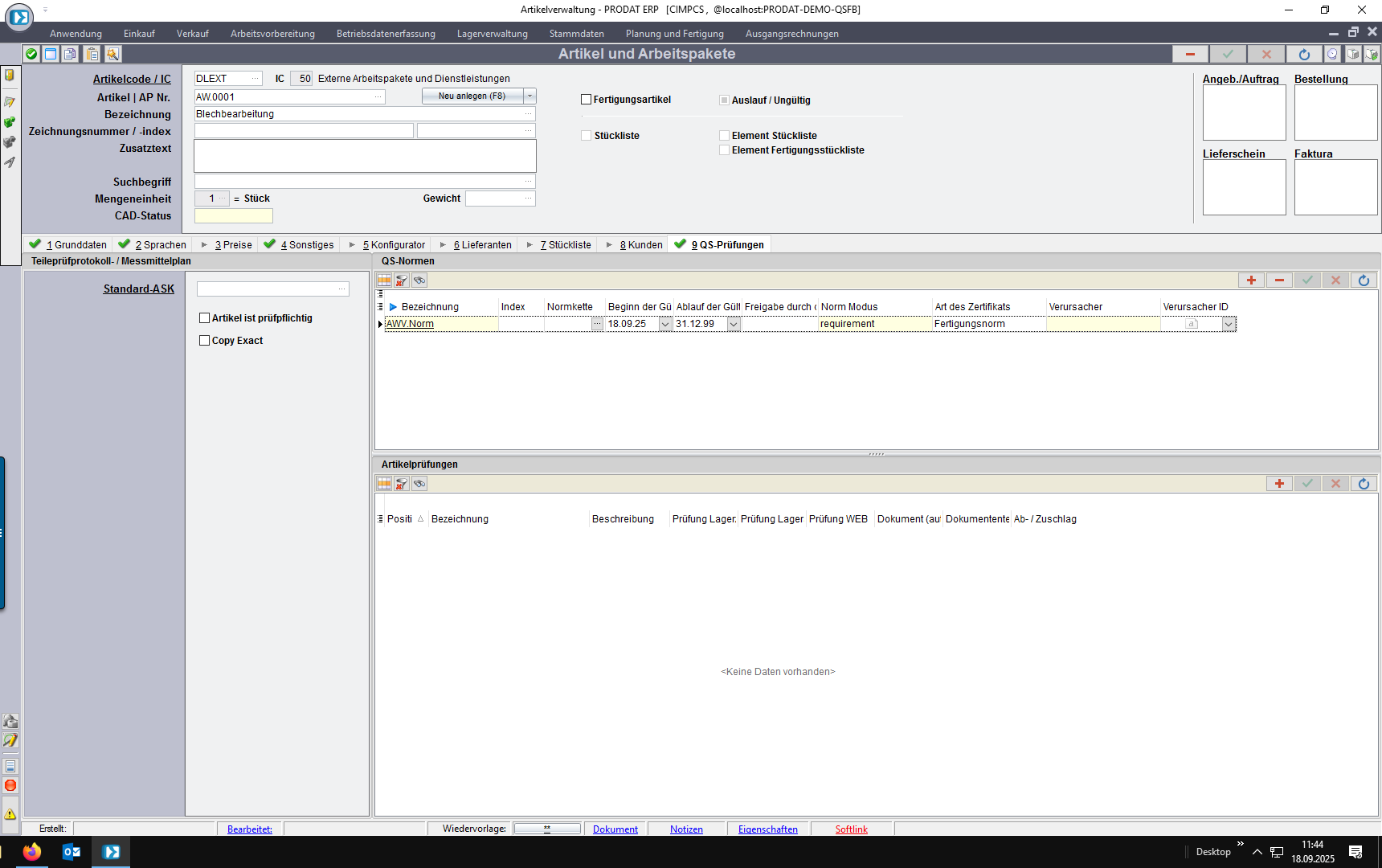 4. Kundenauftrag: individuelle Normforderung unabhängig vom Artikel/Kunden