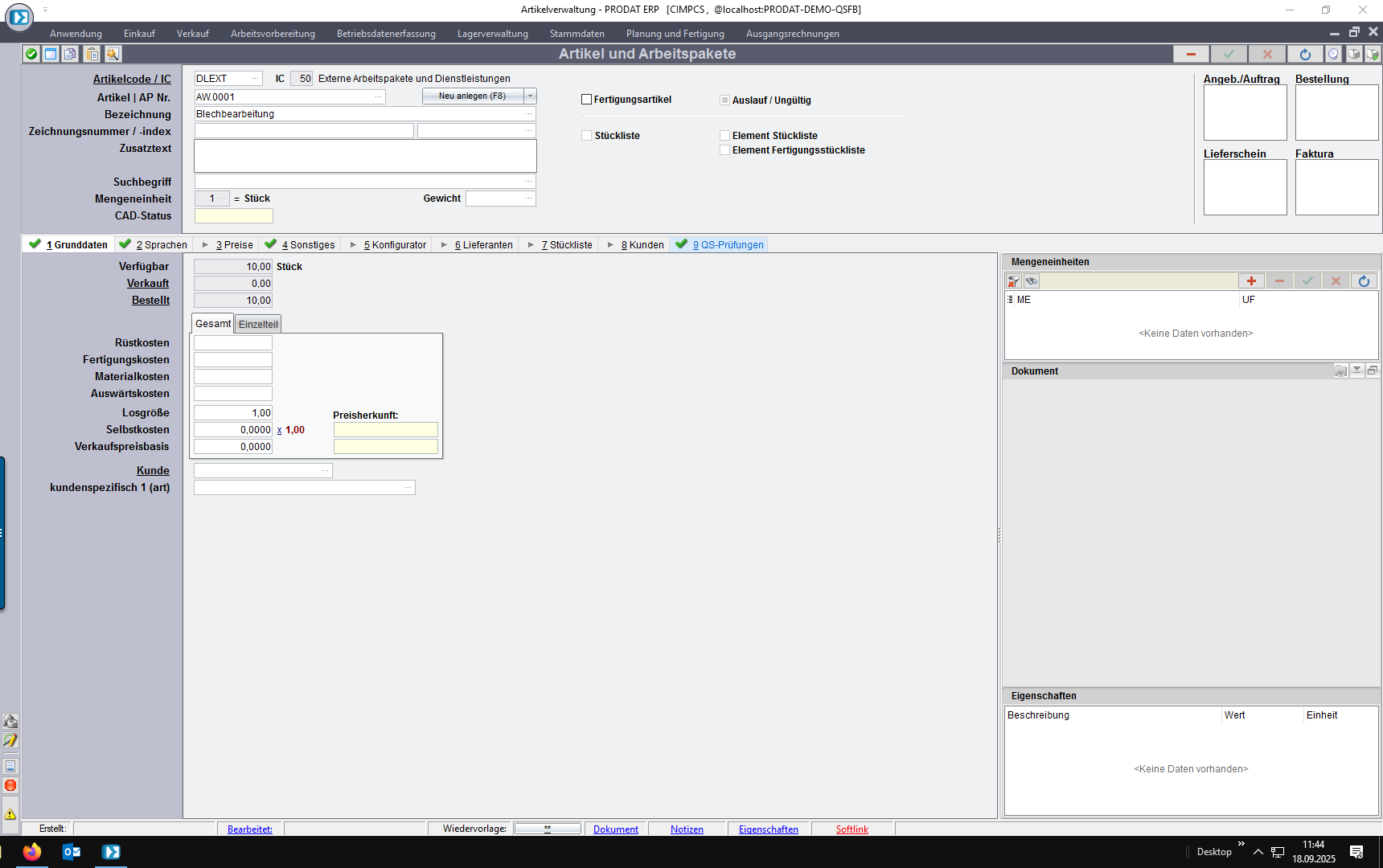 2. Verkauf Baugruppe: alle Elemente der Stückliste müssen beim Auflösen die Normforderungen ihres Kopfartikels vererbt bekommen