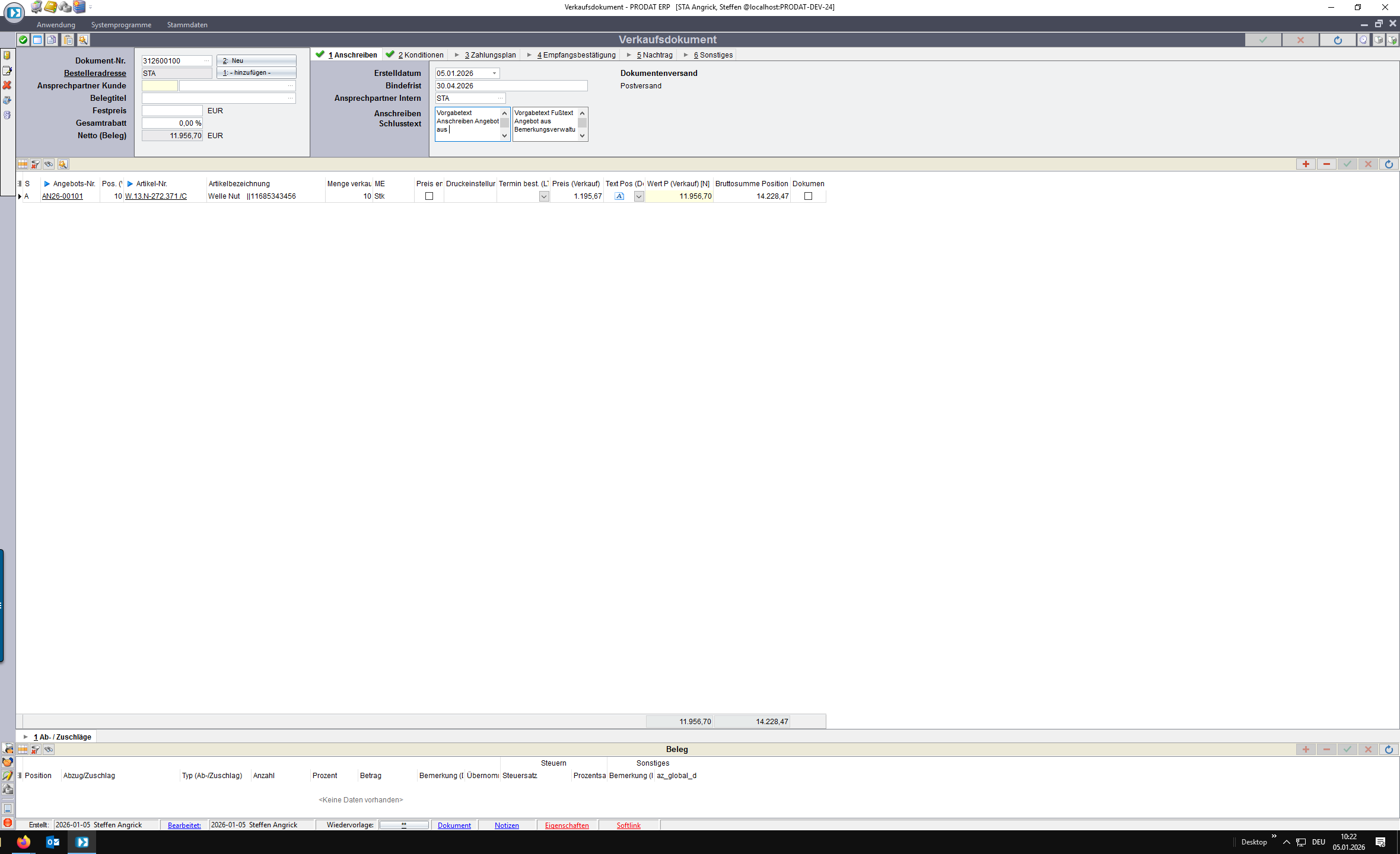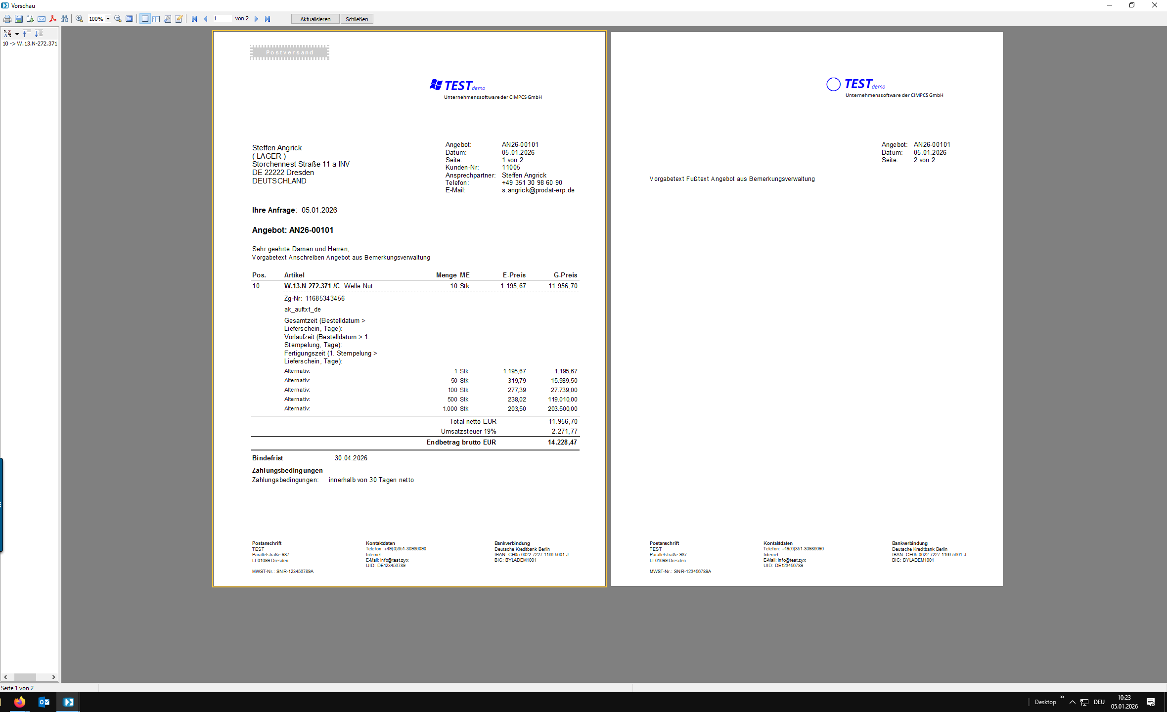 Nun kann das Angebot erzeugt und gedruckt werden.