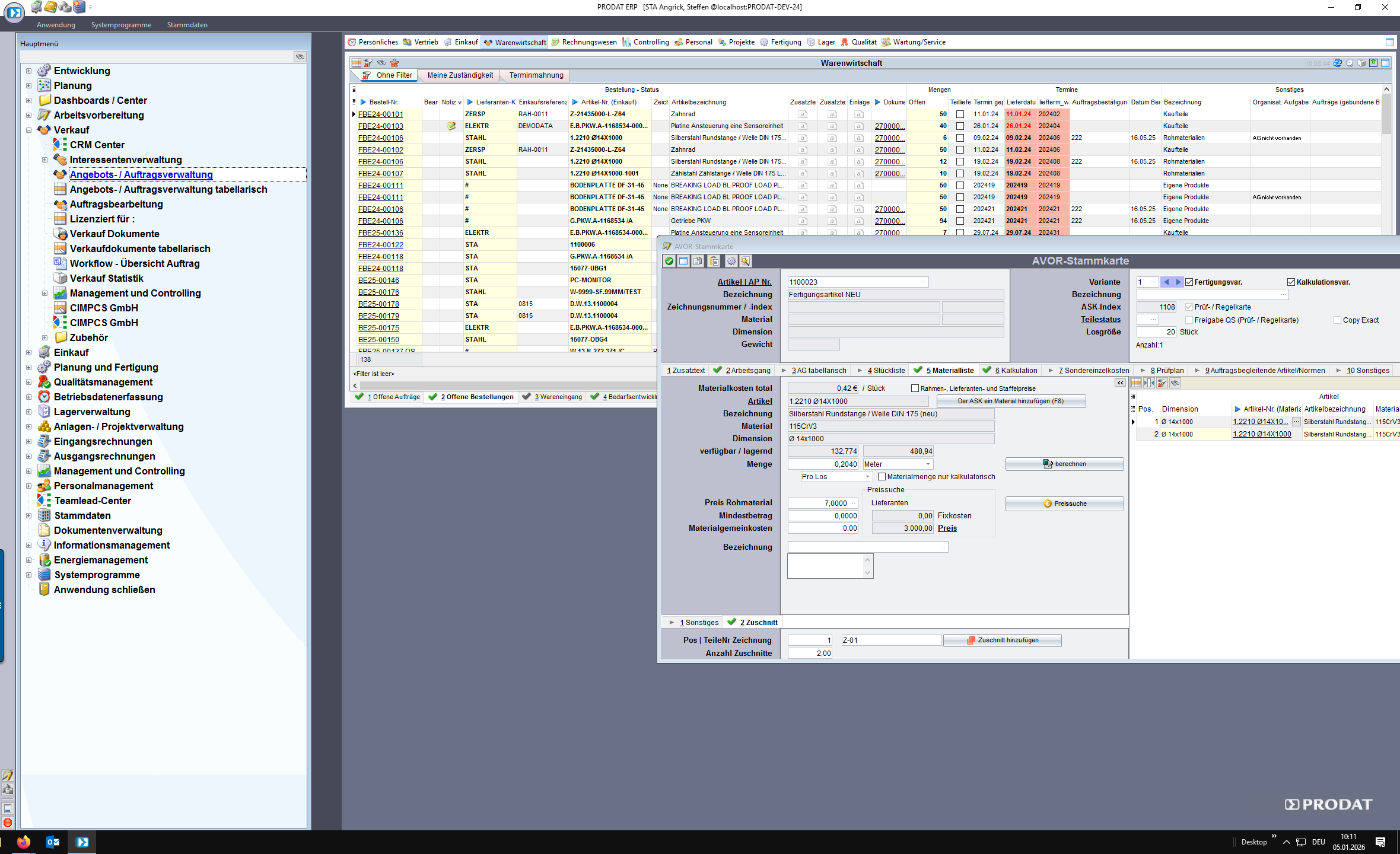 Doppelklick öffnet die Angebotsverwaltung.