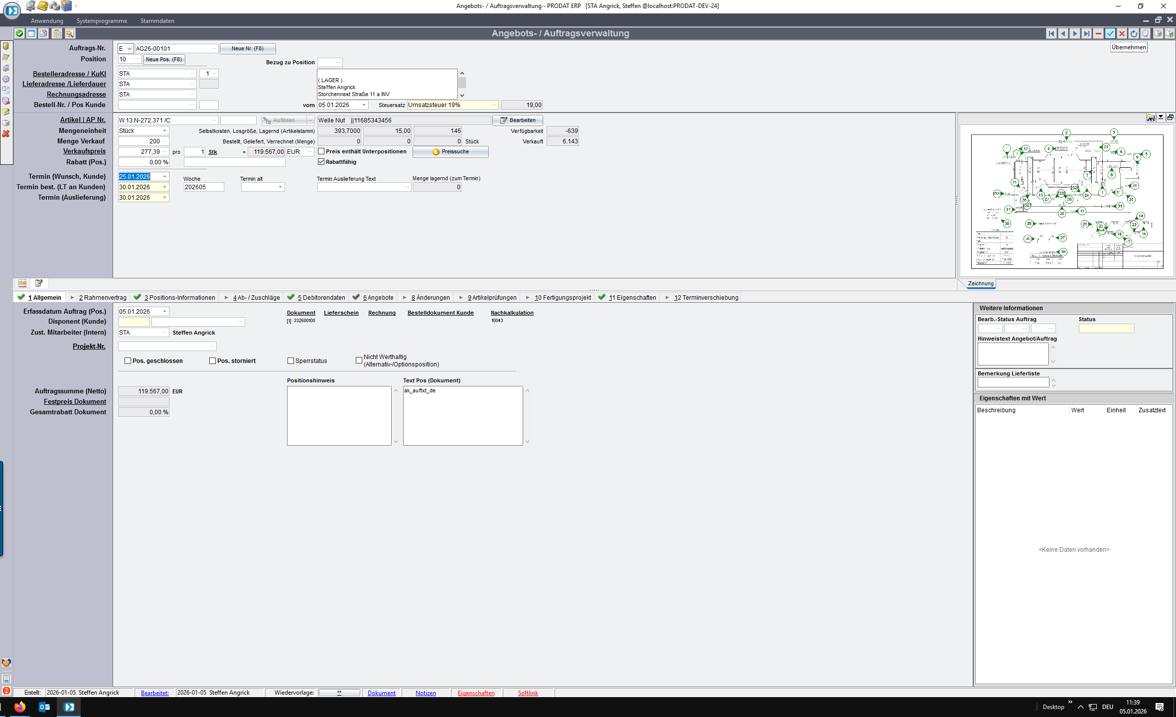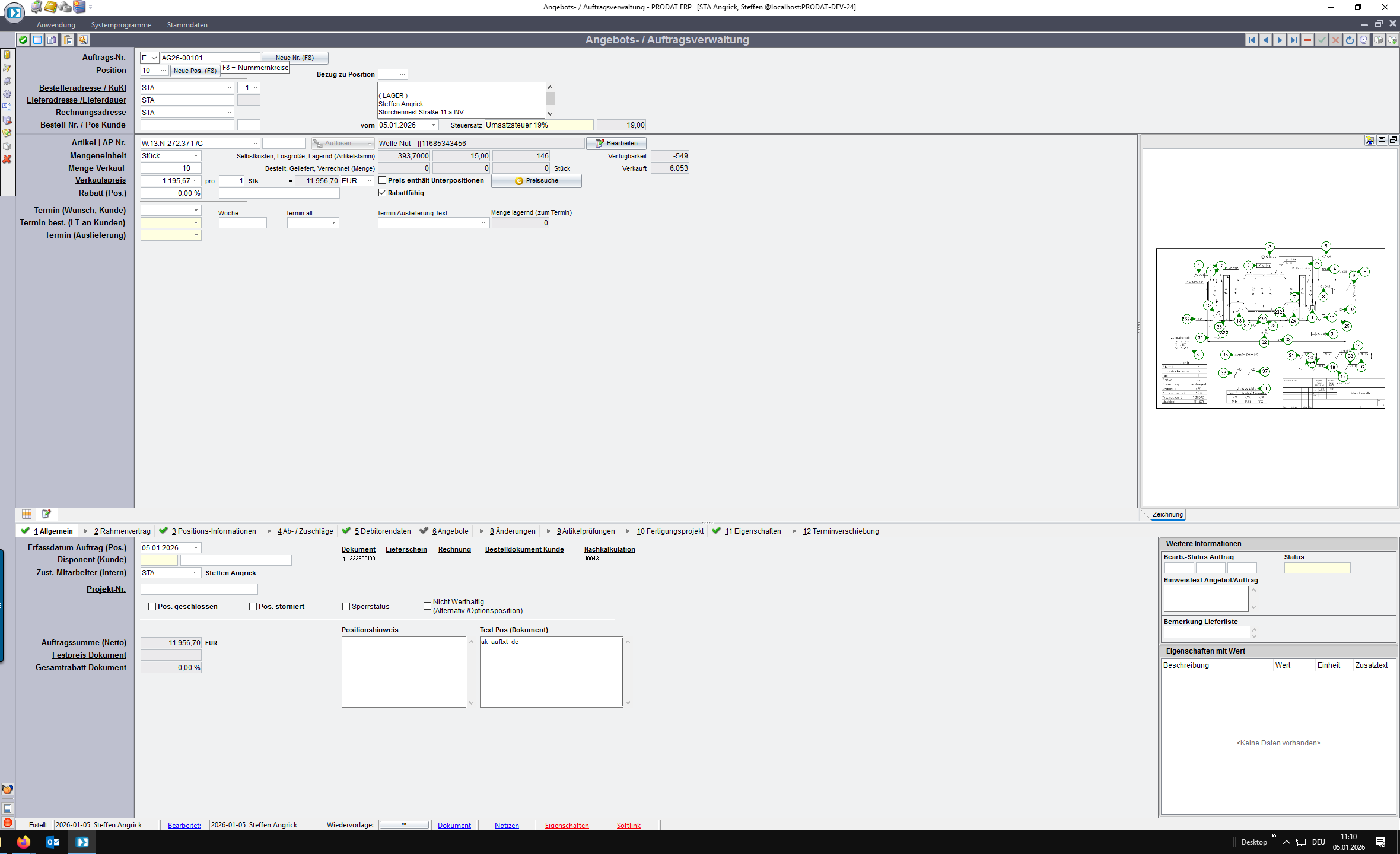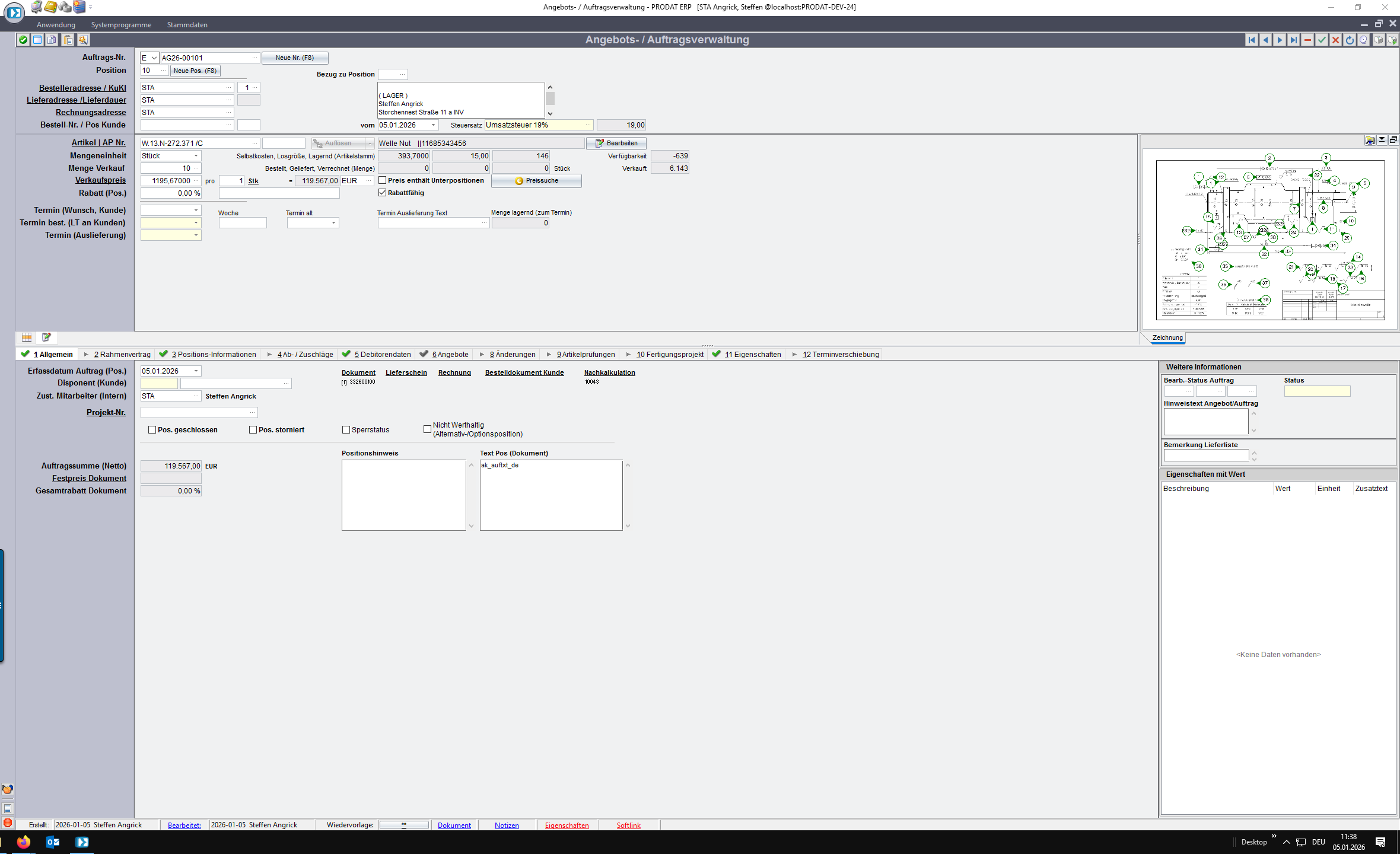 Der Auftrag ist als E gekennzeichnet und hat eine Auftragsnummer.