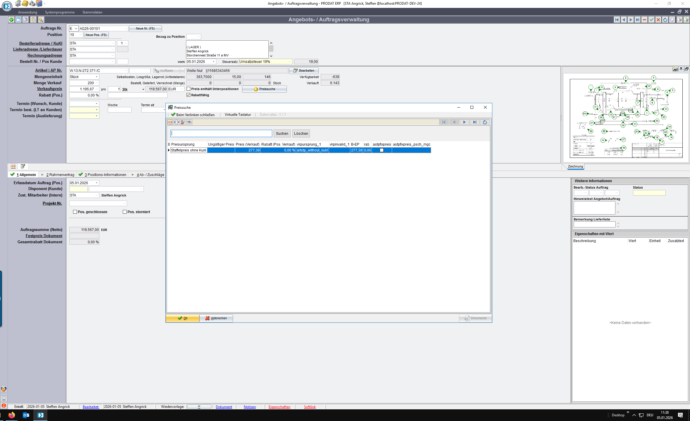 PRODAT findet dann auch die gültigen Staffeln, Rabatte und Zuschläge.