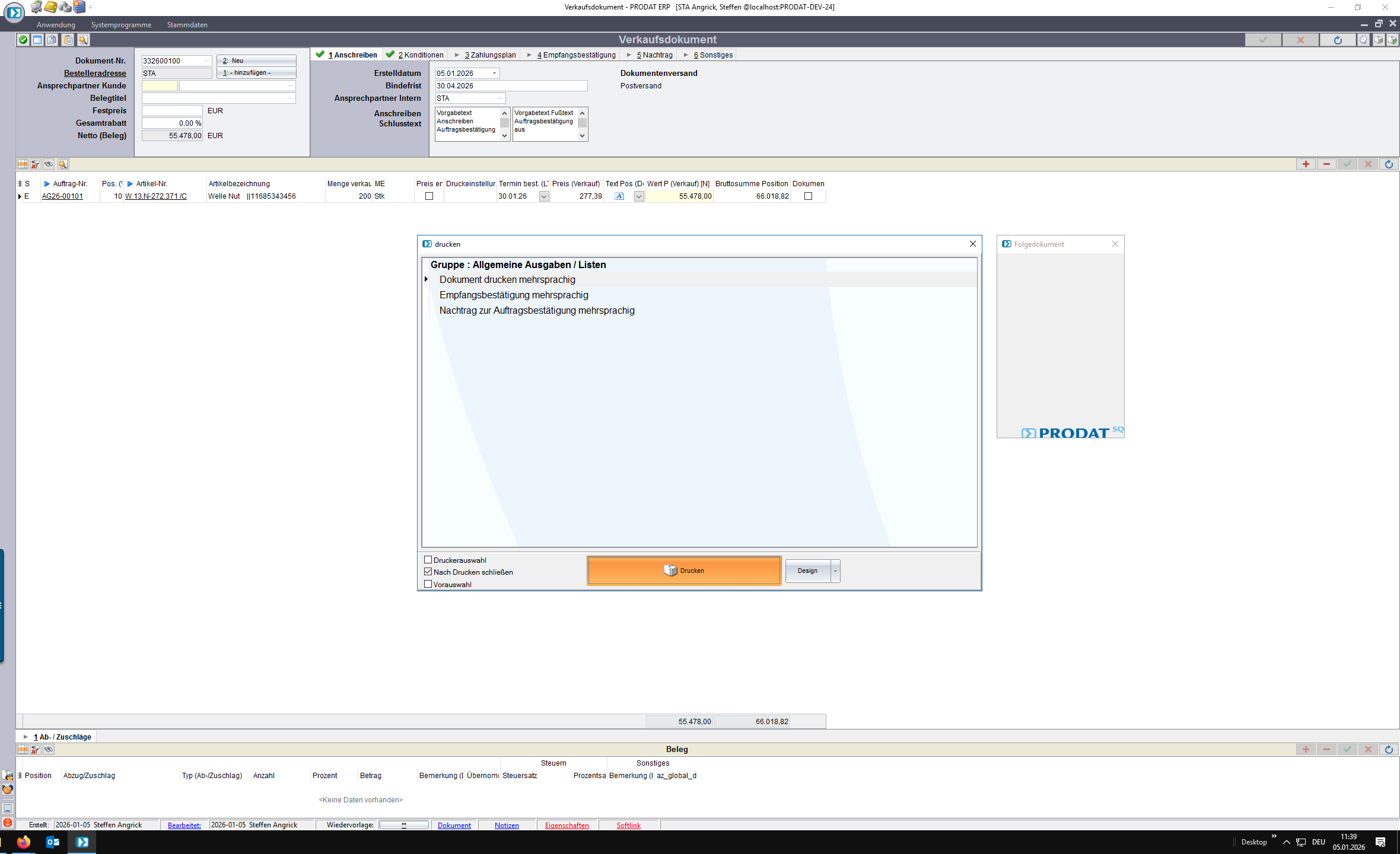 Nachdem Sie ggf. Texte und Konditionen angepasst haben, drucken Sie das Dokument.