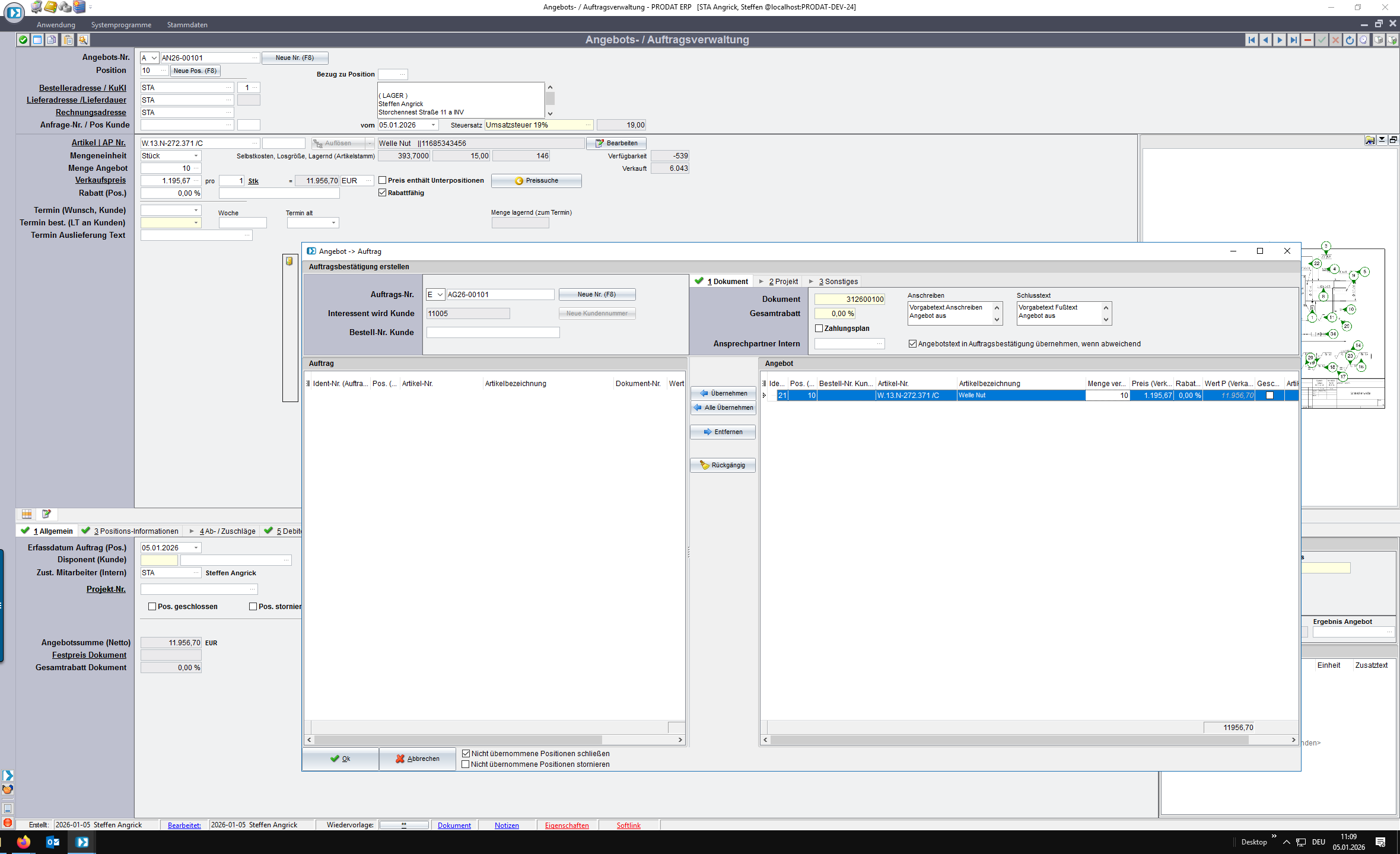 Die Positionen, die in den Auftrag übernommen werden sollen, stehen nun Links.